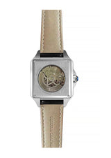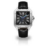 Introducing the Automatic Asorock Diplomat Collection, inspired by and a homage to the iconic Santos, this timepiece features a distinctive cut-off case top, Roman numeral markers, and blue-tipped hands on a sleek silver dial.