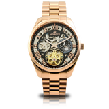 Experience the pinnacle of luxury watchmaking with the Villa Automatic mechanical Tourbillon inspired movement—a masterfully crafted timepiece that combines an exclusive tourbillon movement with an intricate open skeleton dial. Designed by Asorock Watches, this automatic tourbillon inspired movement showcases its inner workings through a captivating see-through display, accentuating the complexity and precision of high-end watch craftsmanship with a working moonphase feature and dual time so you can tell time in two different time zones.